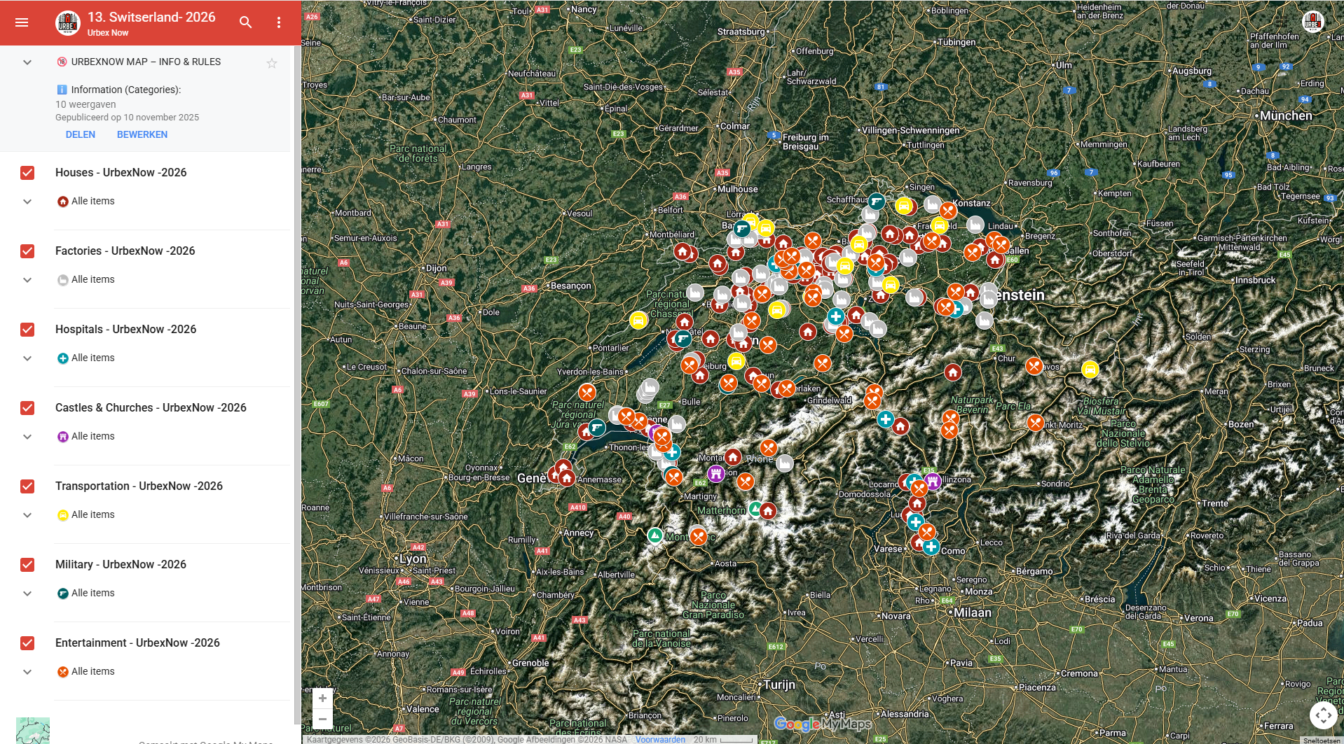 Zwitserland- Urbex Kaart